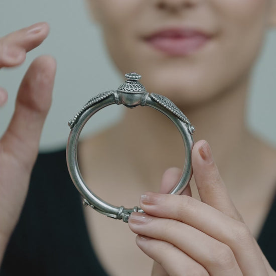 Handcrafted Oxidised Silver Openable Bangle – Ethnic & Festive Wear